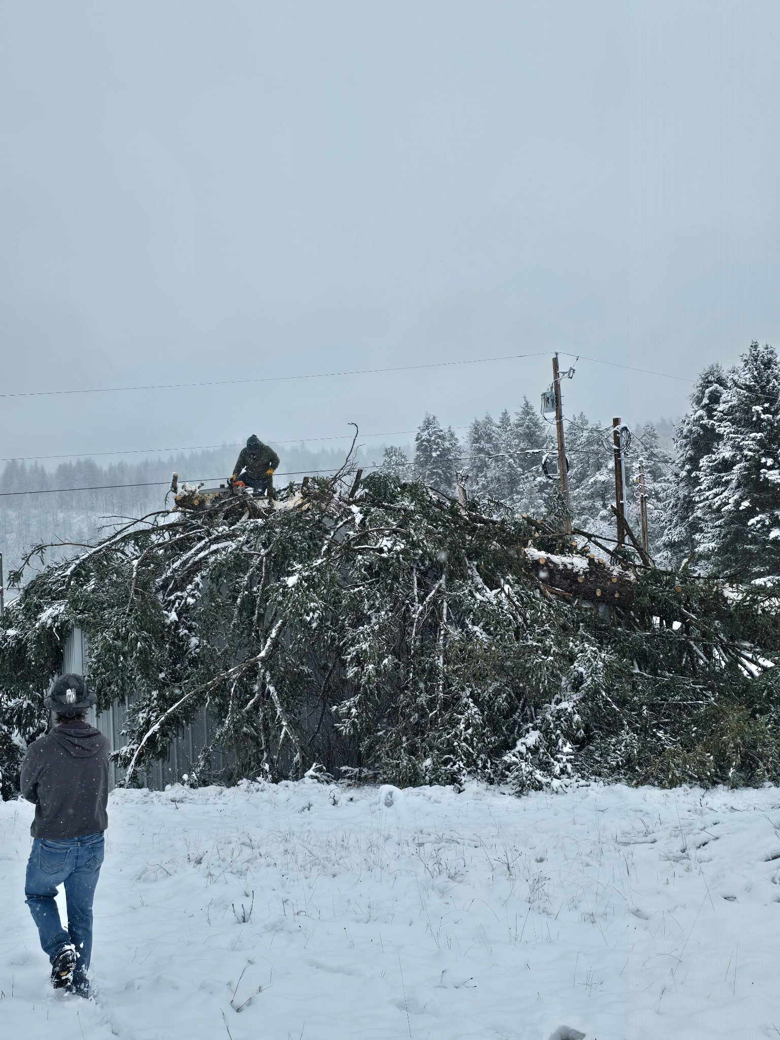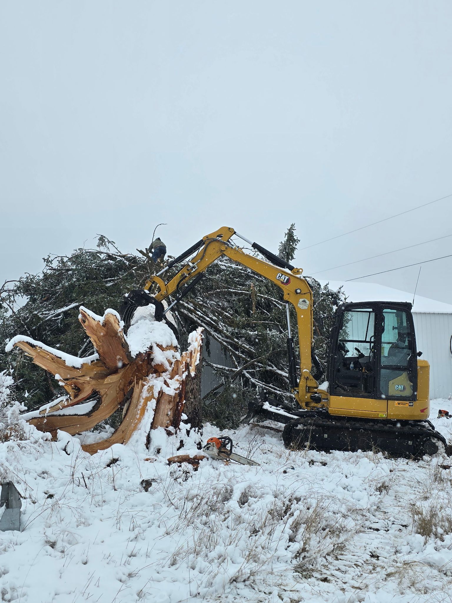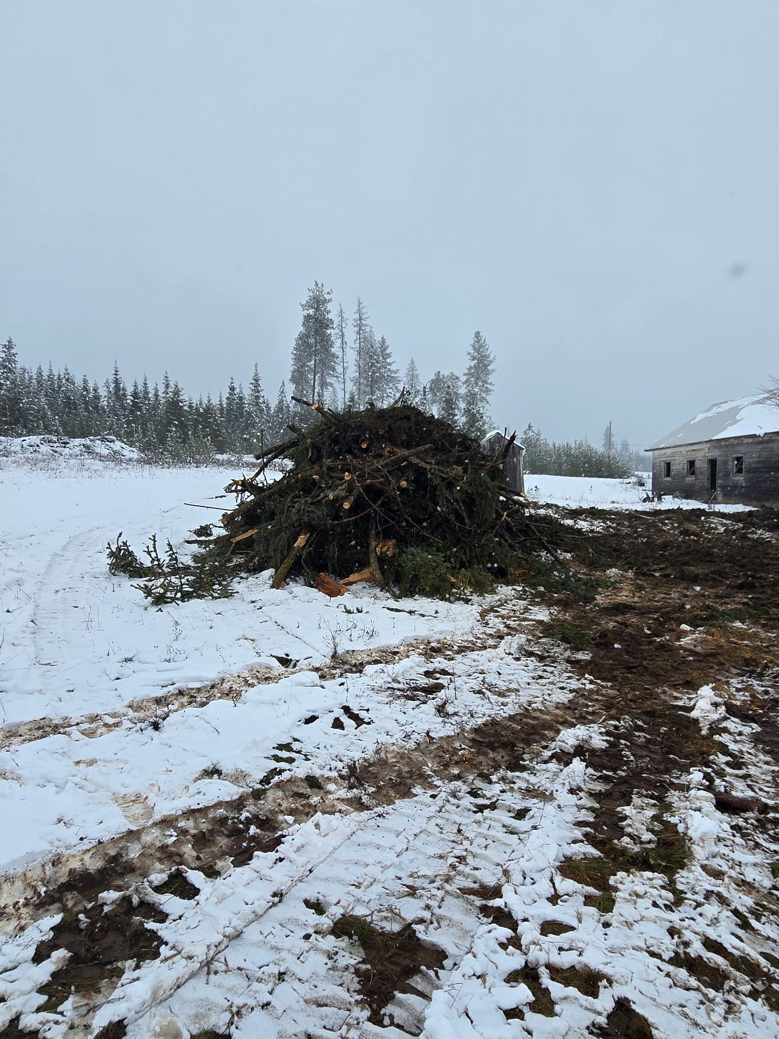 A black icon of two coniferous trees standing on a horizontal line against a white background.
