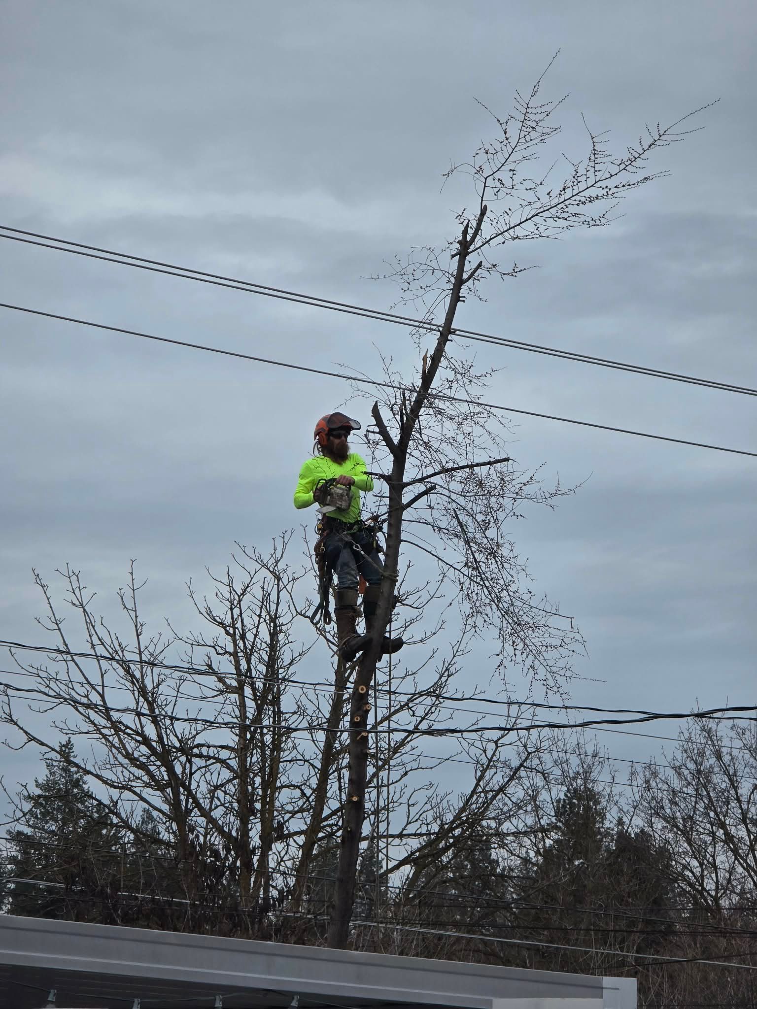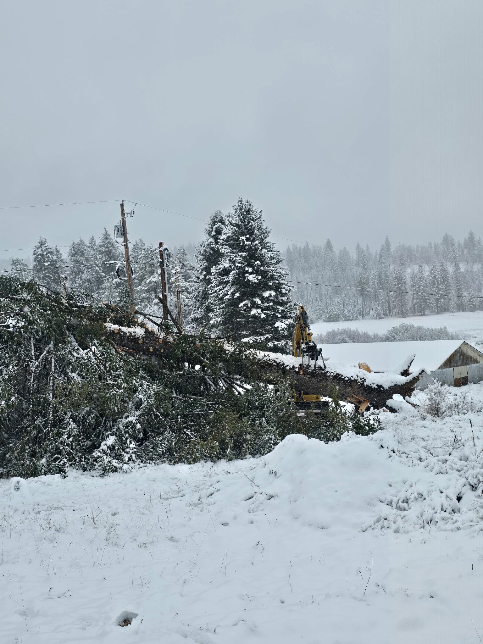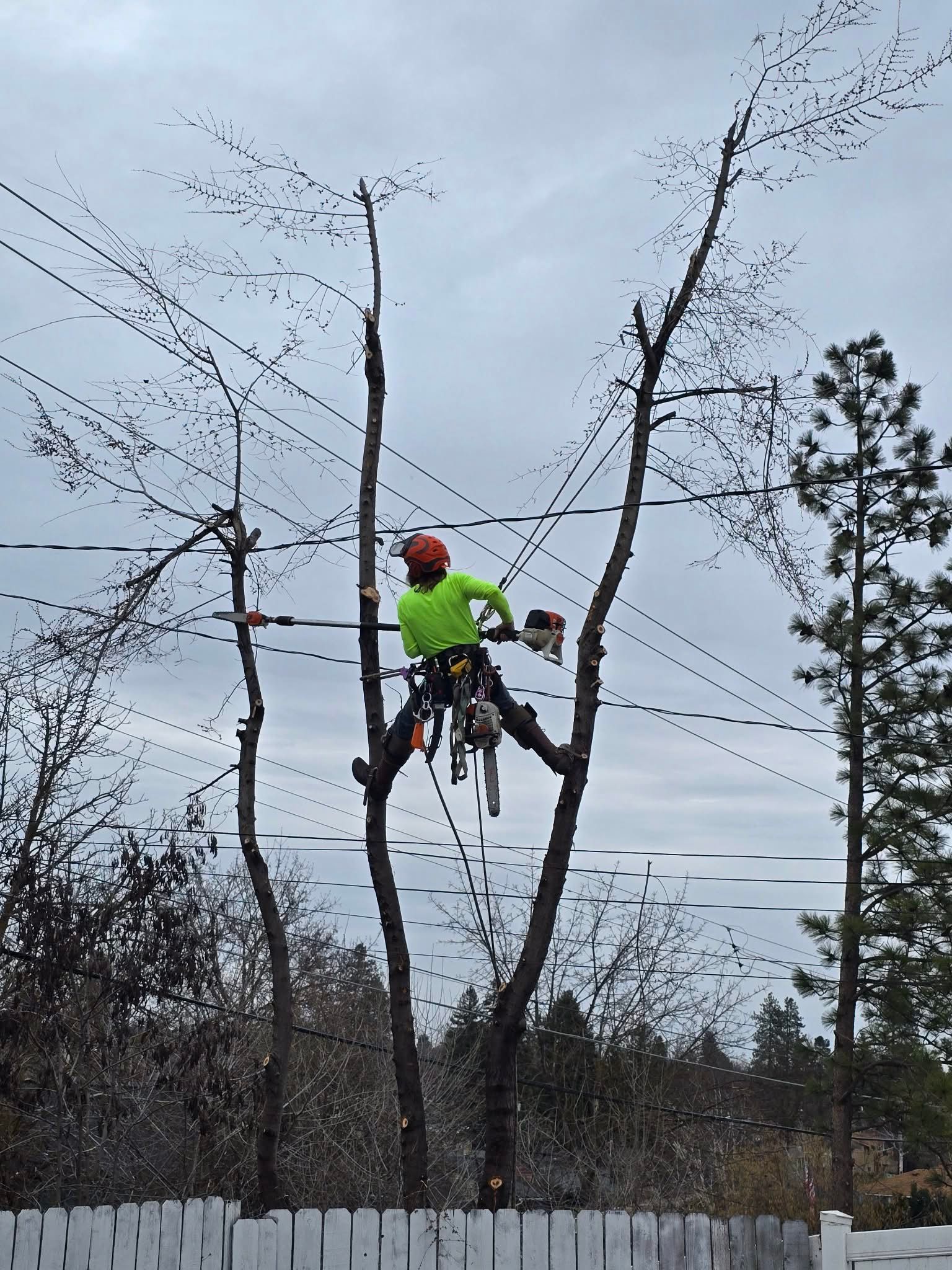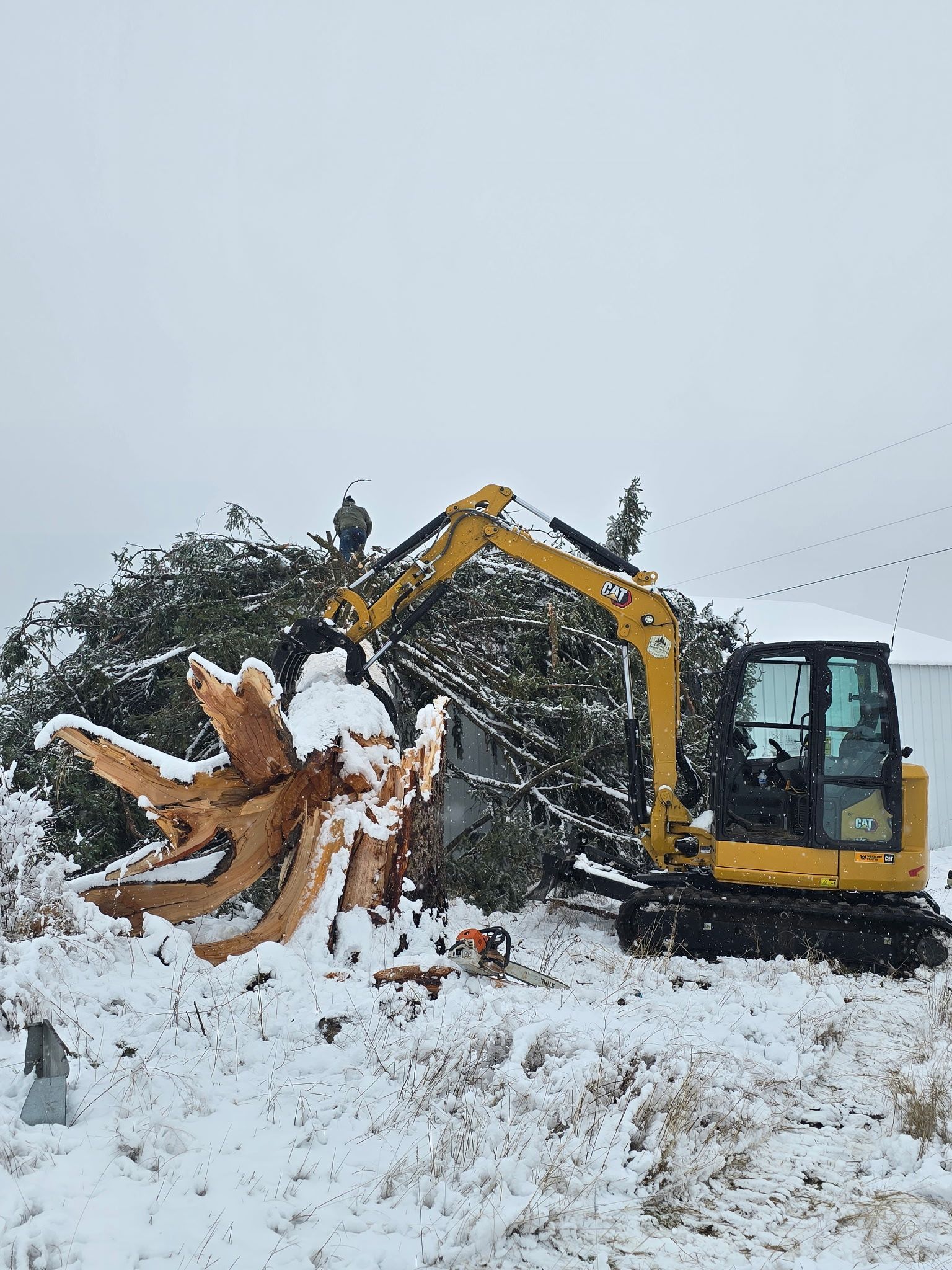 A black icon of two coniferous trees standing on a horizontal line against a white background.